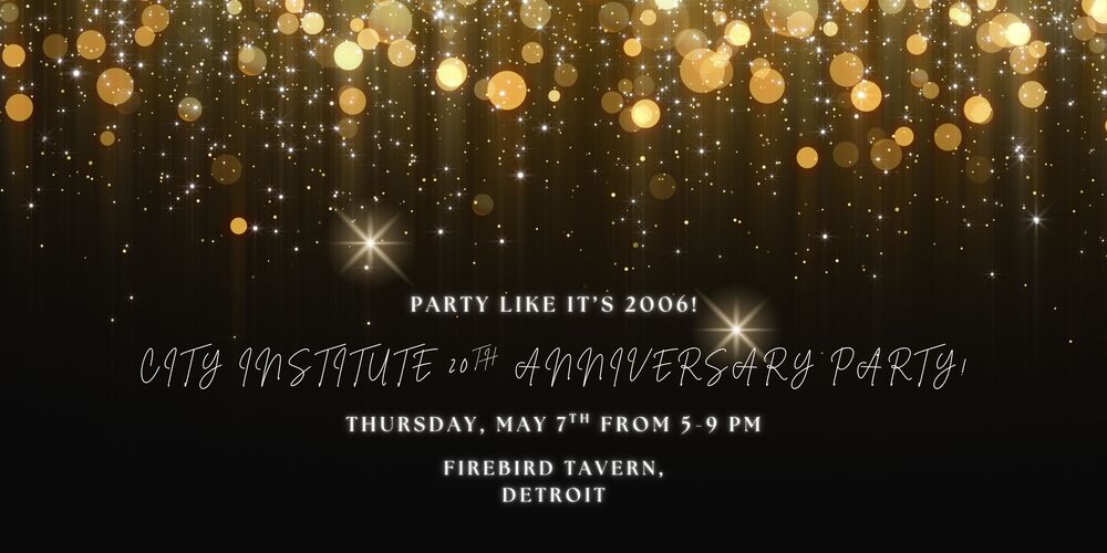 Join the City Institute community as we party like it's 2006 on Thursday, May 7 at Firebird Tavern from 5-9 PM. This is a special reunion event to celebrate our community getting work done for Detroit for 20+ years. Your ticket includes appetizers, one drink ticket, music and lots of fun. Please join us and bring a friend!