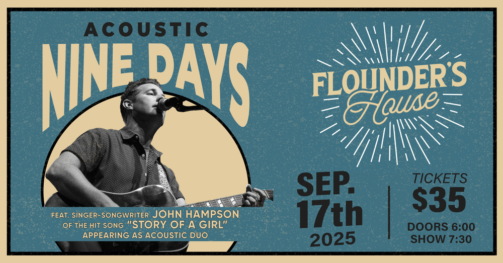 John Hampson, lead singer from Nine Days, comes to Flounder's House for some acoustic Nine Days! This is an acoustic duo show.