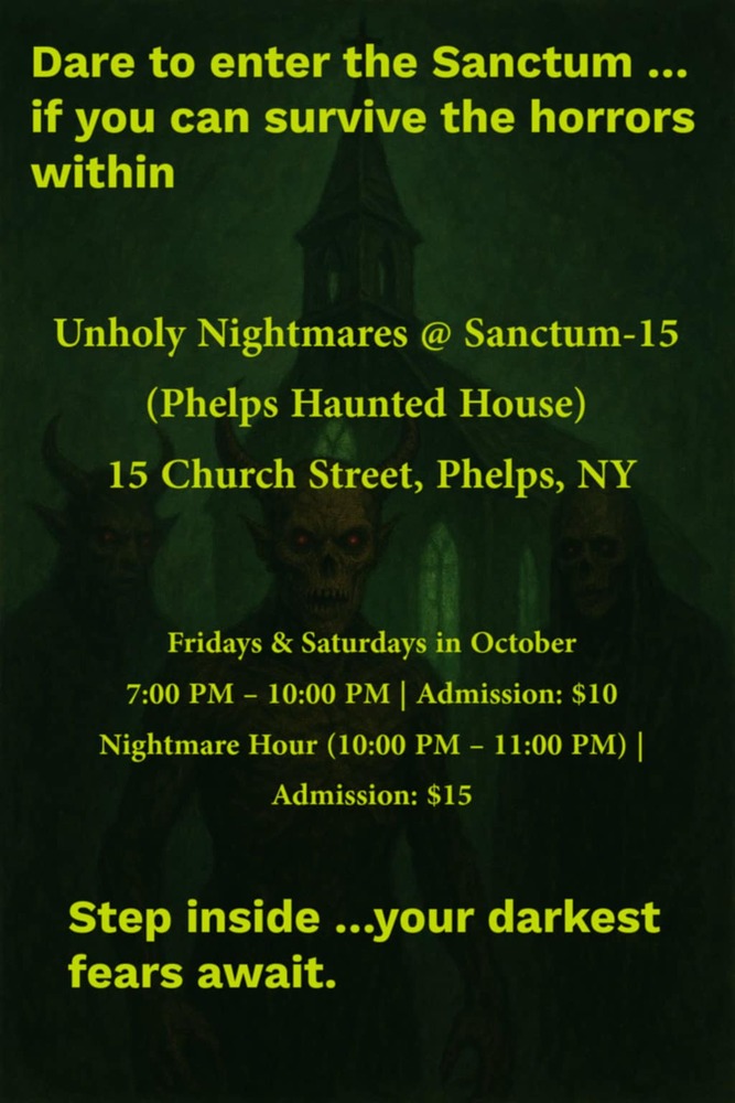 The Phelps Haunted house has been transformed! Sanctum 15 was born and its spooky season! The scares will be off the charts! Enter our dark hallways and be ready for a new maze and new scares!