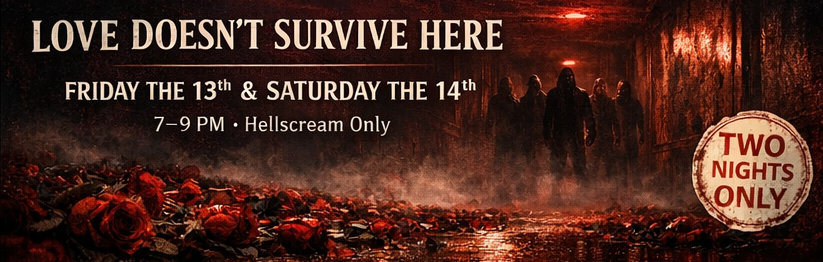 For two nights only, Hellscream Haunted House transforms into a corridor of obsession, loss, and bad luck as Valentine’s Day collides with Friday the 13th.